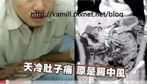 - 腹部X光:疾病早期的腹部X光,通常無特別的異常發現。常若在X光上出現腸梗阻(ileus)或腸壁增厚的情況,腸子70%已壞死了。